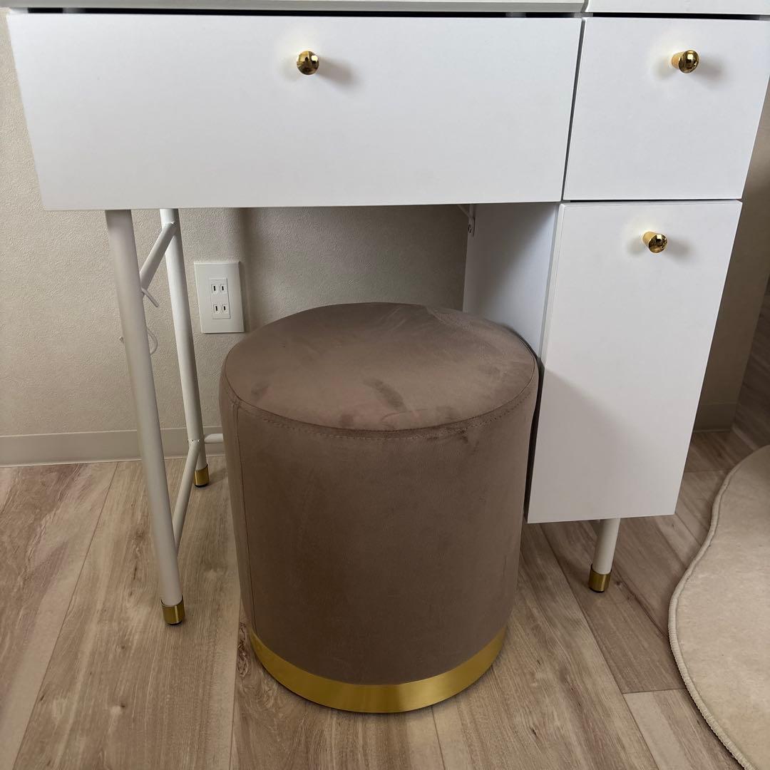 - 商品は概ね満足していますが、机の足の部分にバリがありました。それはイスをしまえば隠れるので許容範囲ですが、ドレッサーの足の長さが違うのか嵌めてある保護剤の厚みが違うのかはわかりませんが、ガタツキます。ティッシュを挟んで応急処置をしていますが、この値段でこの造りかぁー。と少し思いました。 サイズは、幅60のドレッサーと迷いましたが、意外とコンパクトでこちらで良かったと思います。7帖の部屋でも圧迫感なく置けました。 鏡面仕上げに惹かれましたが、鏡の下部分などや机の足部分など所々鏡面仕上げではありません。(紙が貼ってある感じ?) 背面はホッチキスの針が目立つので、後ろを隠す置き方の方が良いと思います。